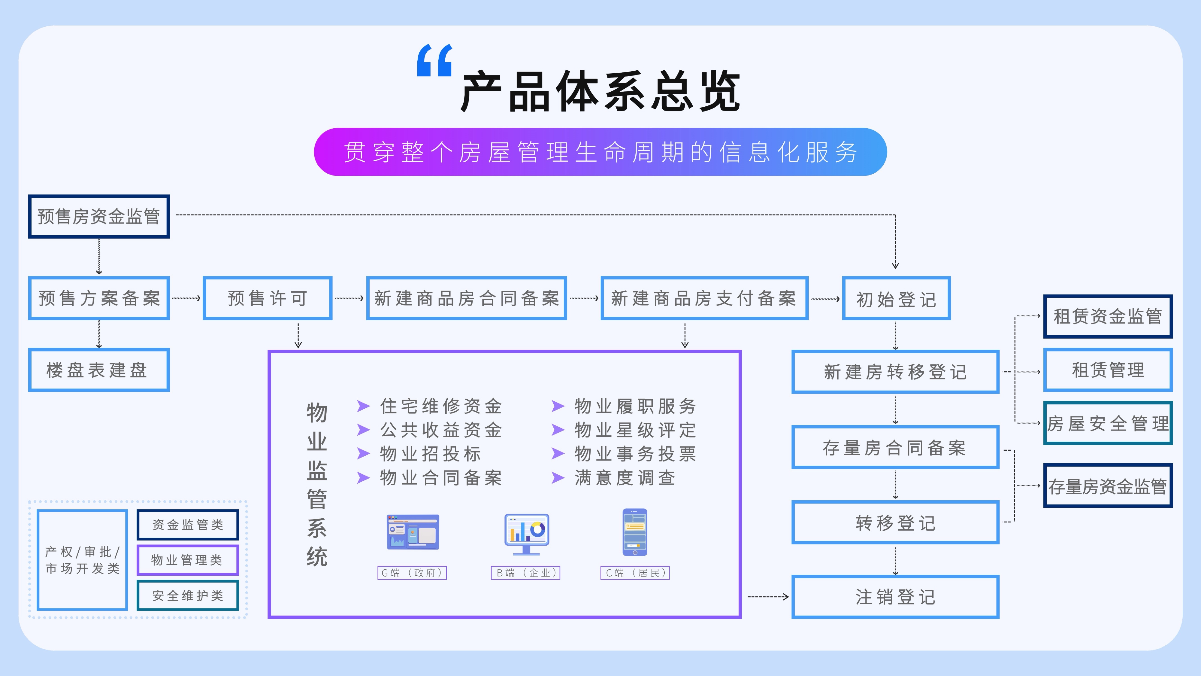 一、资金监管类:筑牢房屋“数字养老金”防线,包括住宅专项维修资金系统、公共收益监管系统、存量房交易资金管理系统、商品房预售资金管理系统等功能系统,实现了主管部门对资金的实时监控与统计分析,确保其资金使用的合法性、规范性及透明性,以保障业主业务权益、提高维修效率、为监管部门提供有力支持。