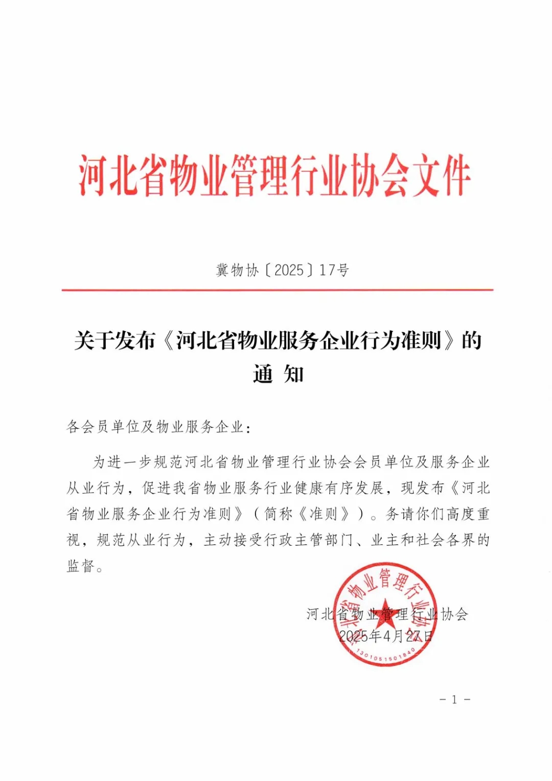 关于发布《河北省物业服务企业行为准则》的通知