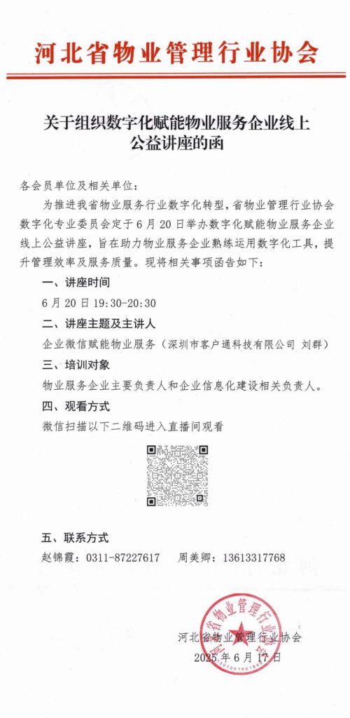 关于组织数字化赋能物业服务企业线上公益讲座的函