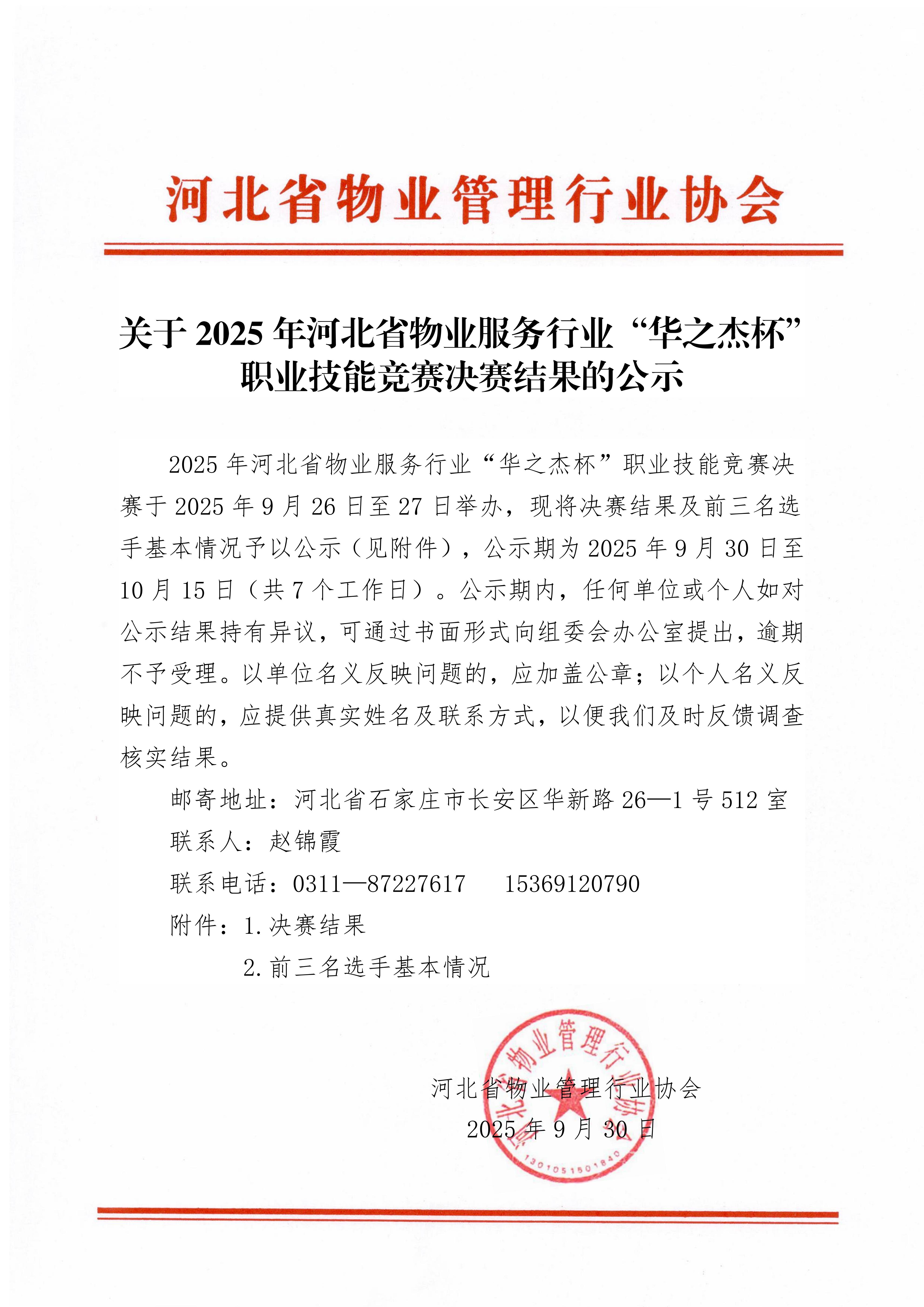 关于2025年河北省物业服务行业“华之杰杯”职业技能竞赛决赛结果的公示