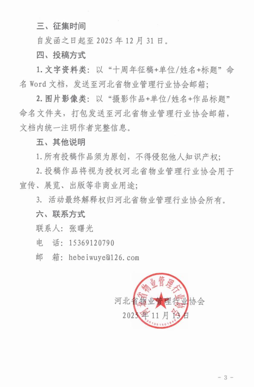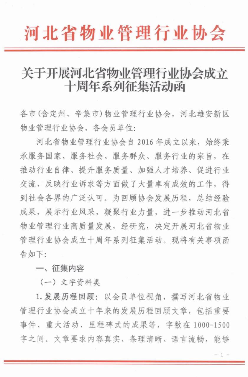 关于开展河北省物业管理行业协会成立十周年系列征集活动函