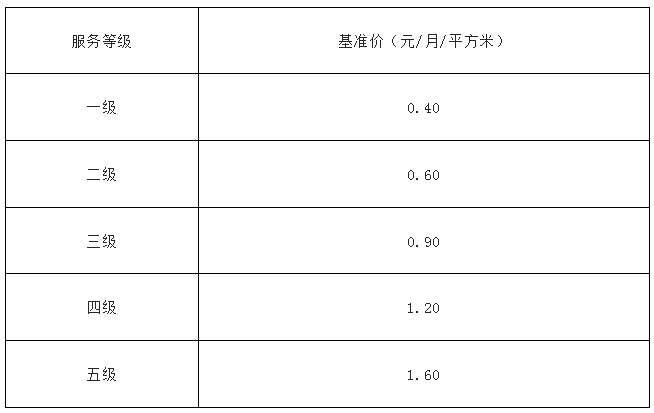 主城区前期物业服务收费各等级基准价维持不变,具体如下:
