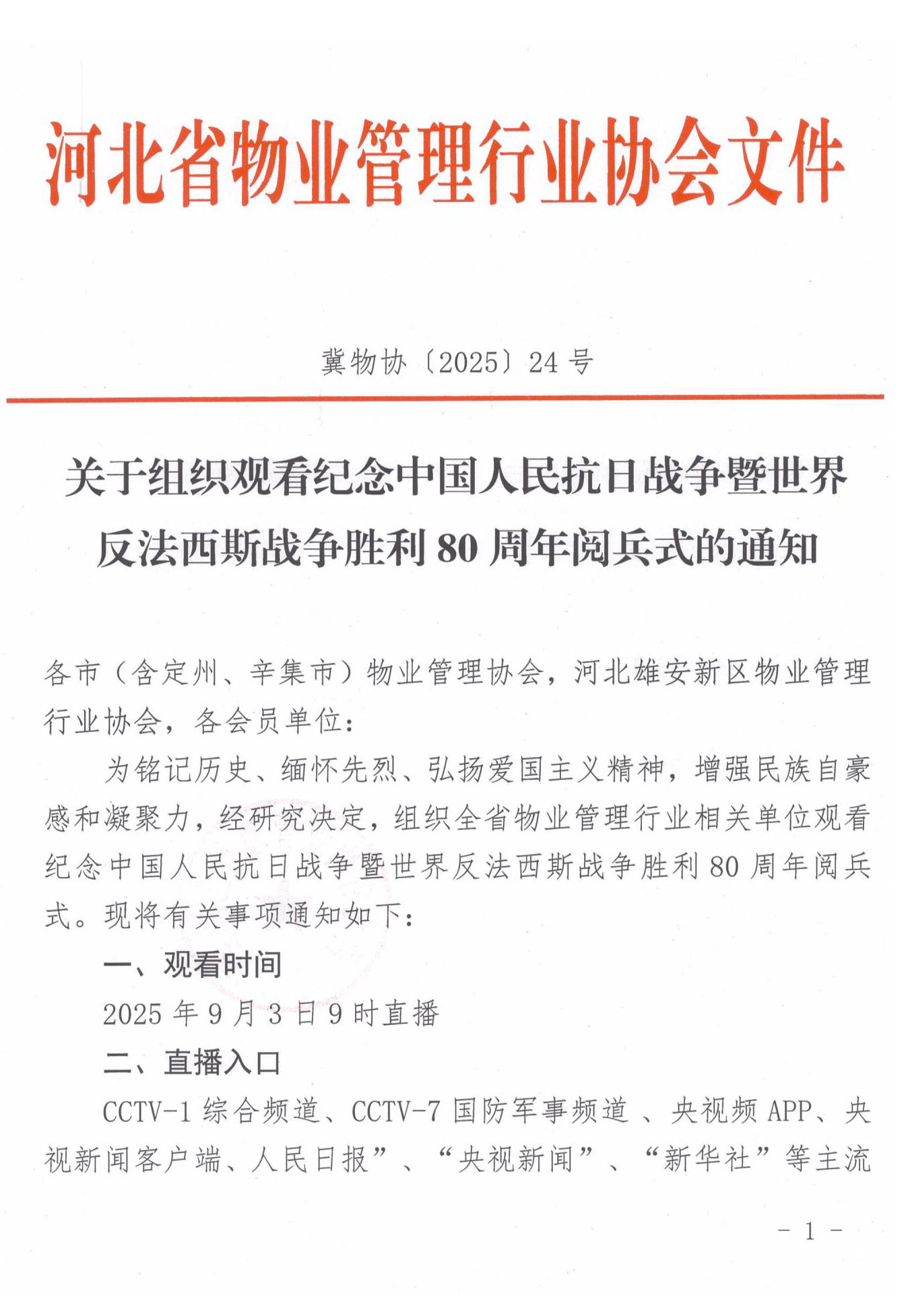 关于组织观看纪念中国人民抗日战争暨世界反法西斯战争胜利80周年阅兵式的通知