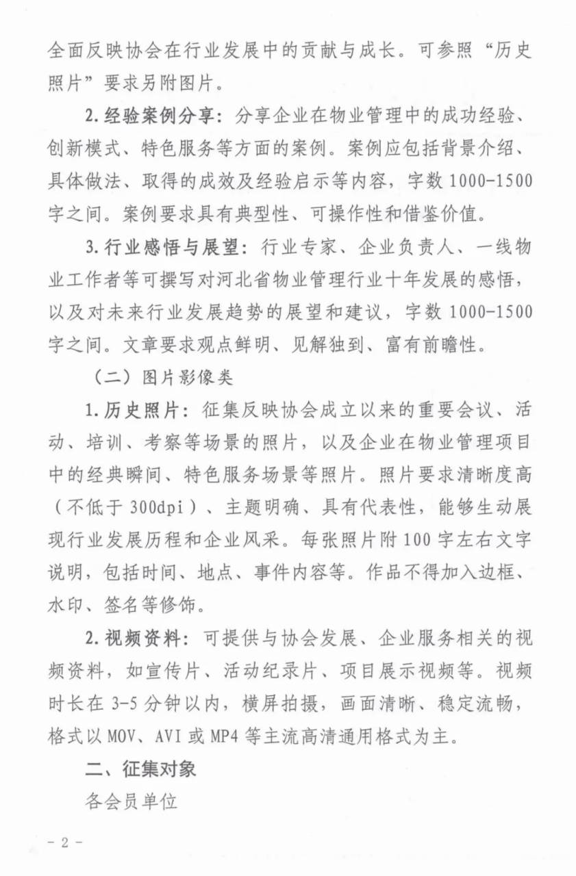 关于开展河北省物业管理行业协会成立十周年系列征集活动函