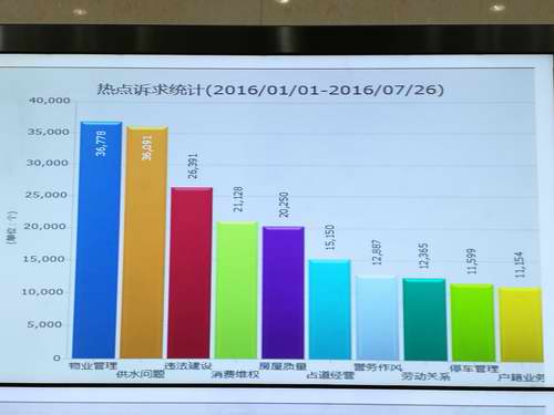 据南京12345政务热线中心相关负责人介绍,2016年1月1日至2016年7月26日,南京市12345政务热线共接到群众来电652115次,派发工单393162件,各承办单位工单按时办结率为99.0%,办结提速率76.95%,市民诉求办理综合满意率为88.21%。其中物业管理、供水问题、违法建设和消费维权四种类型的诉求量较大,共120461件,占总工单比例的23.53%。