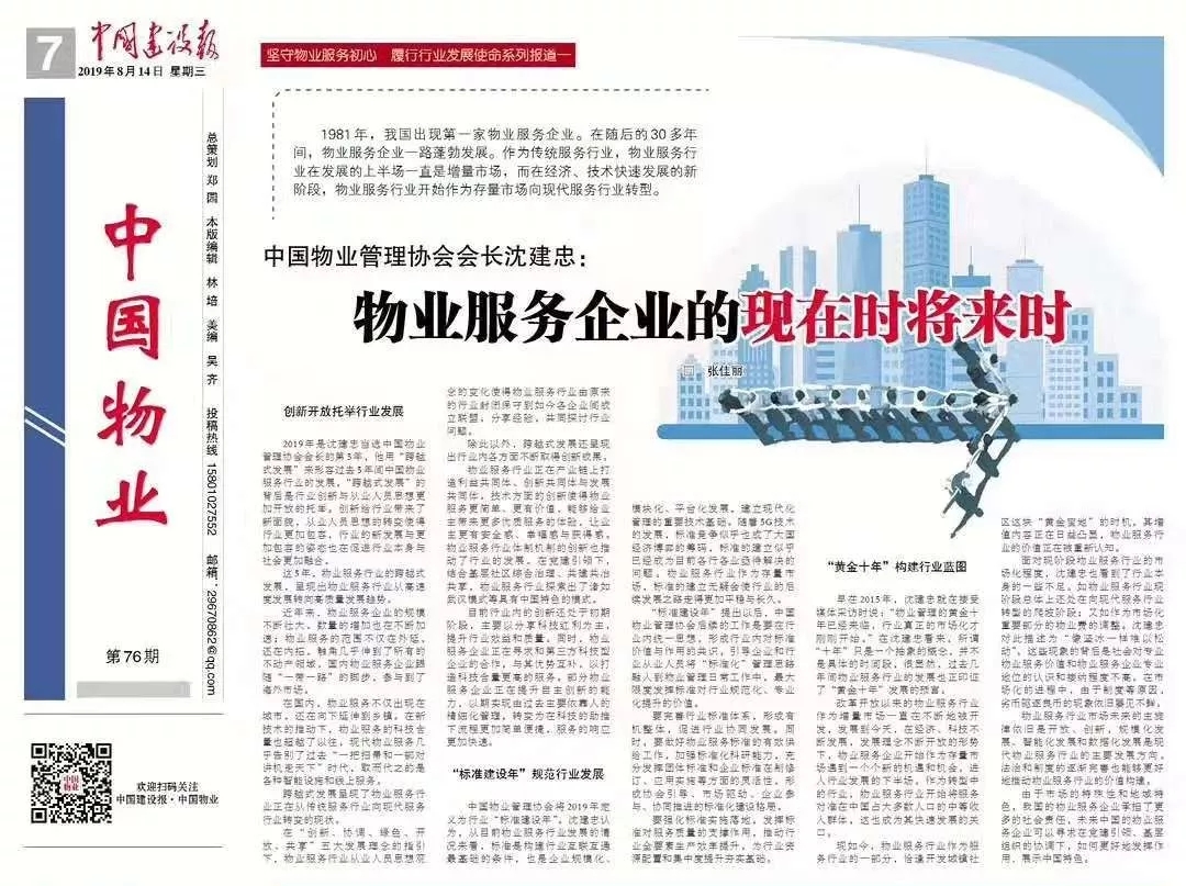早在2015年,刚成为中国物业管理协会会长的沈建忠就在接受媒体采访时说:“物业管理的黄金十年已经来临,行业真正的市场化才刚刚开始。”